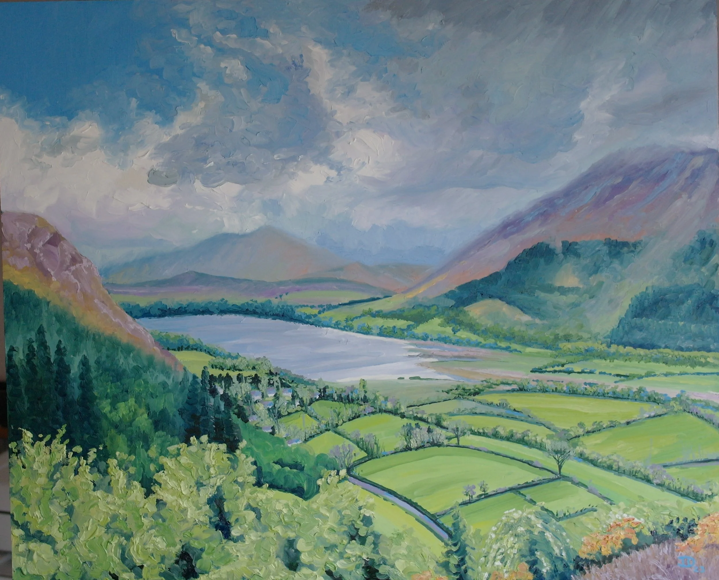 Part of my Powter How series this is a view of Bassenthwaite Lake looking North from the terrace half way up Whinlatter Pass West of Keswick in the Lake District. I have cycled up this famous climb hundreds of times and always been inspired by the view and that sense of elevation. With the Skiddaw mountain range to the east this is an epic lakeland view.