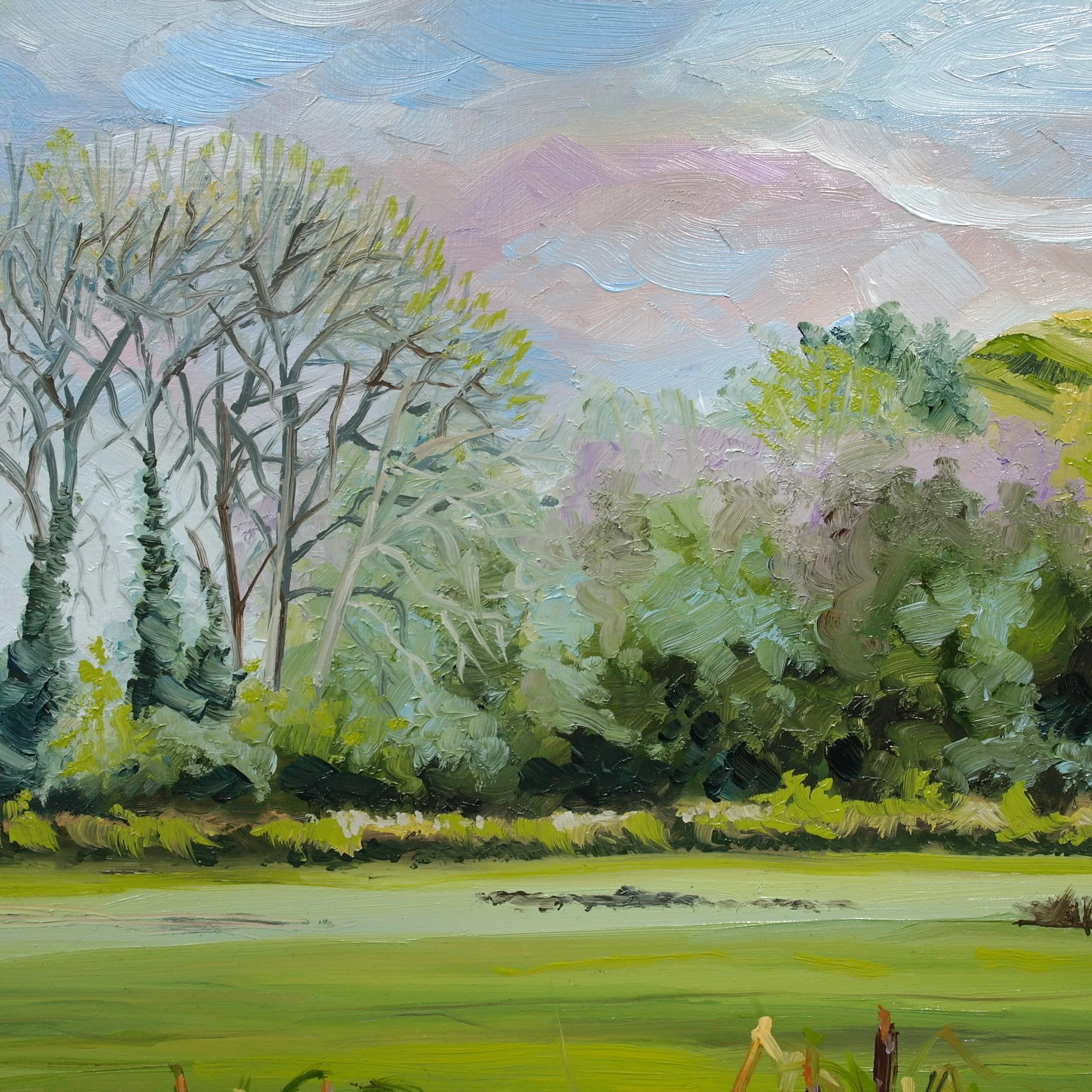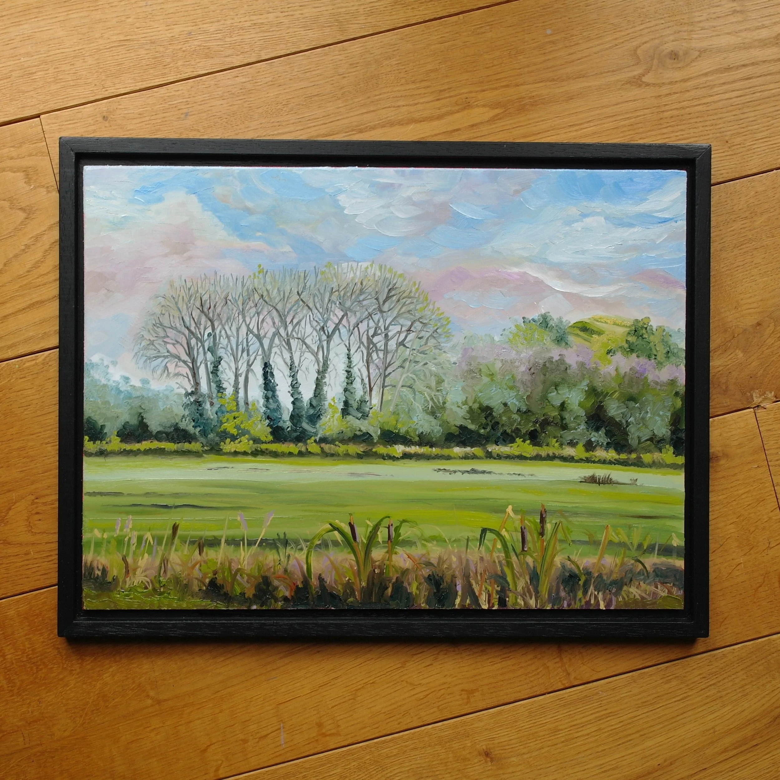 Inspired by David Hockney’s Bigger Trees at Warter (2007) this is a view of the trees that line the old Norman Castle mound in Tickhill. It was painted from a series of pen & ink reference sketches. It is presented in a hand made black float frame.